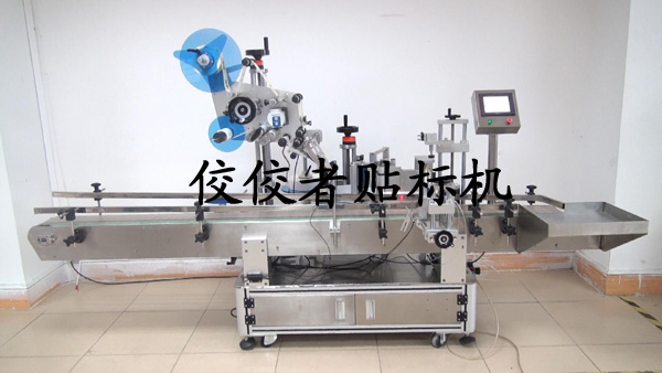 下面來看一下對塑料圓瓶頂部貼標及側(cè)面打碼貼標的全自動圓瓶加蓋子貼標機的設備圖片: