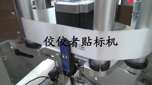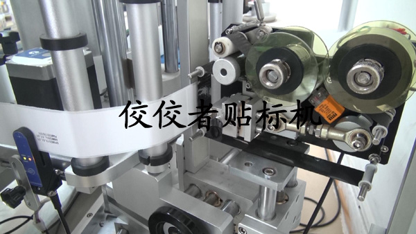 上圖展示的是第一次貼標,即對塑料圓瓶進行頂部的貼標,和平面貼標機的貼標頭是一樣的。下面到了第二次貼圓瓶側(cè)標這一步了,在這之前還需要對標簽進行打碼,請看下圖: