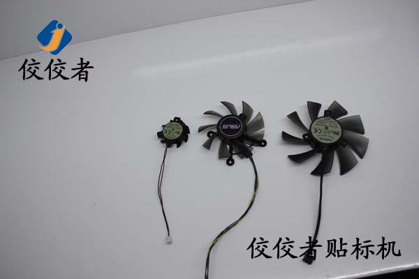 圖片中的產品是,電腦內置散熱器中的電風扇,上圖中分別有三種不同直徑,用于筆記本電腦、一體機和臺式電腦中,尺寸比較固定,只有三種?蛻羲玫臉撕灋椴桓赡z標簽,尺寸也是三種,分別對應不同直徑的散熱電風扇。初步判斷,上圖中的樣品,可以用同一臺貼標簽機對這三個不同直徑的散熱電風扇進行貼標,以減少客戶的購機成本。能貼散熱器電風扇有產品是我公司標準機中的半自動平面貼標機和全自動平面貼標機。