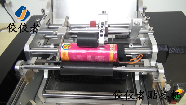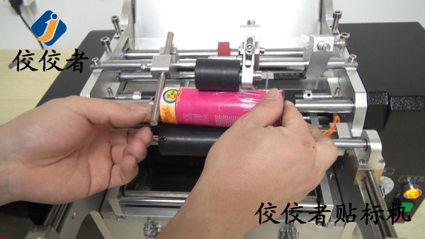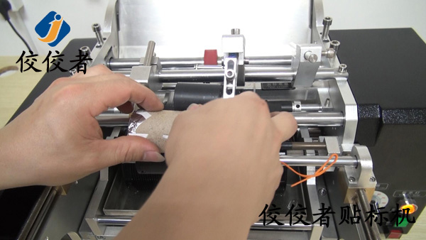 將產(chǎn)品放入到貼標(biāo)機(jī)上放產(chǎn)品的位置,這里可根據(jù)產(chǎn)品直徑大小和長短來調(diào)整這個(gè)間隔,讓產(chǎn)品放上去平穩(wěn),然后踩腳踏開關(guān),標(biāo)簽出標(biāo)貼標(biāo)覆標(biāo),如下圖: