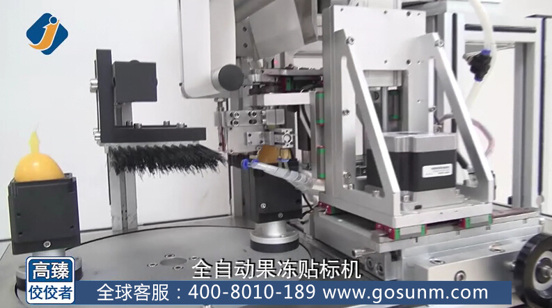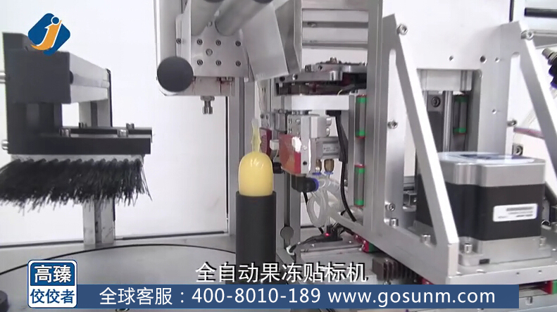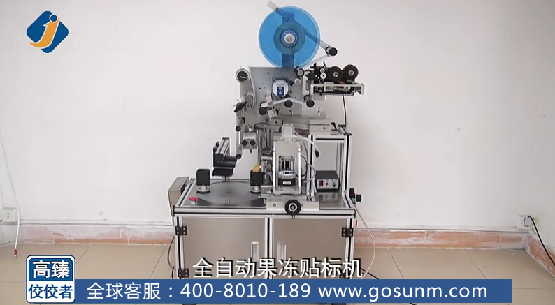 我想很多人小時(shí)候甚至現(xiàn)在都很喜歡吃果凍吧,那種又甜又滑的感覺(jué)讓人愛(ài)不釋手,果凍的包裝更是各式各樣,隨著市場(chǎng)需求的迅速擴(kuò)大,果凍行業(yè)逐步形成產(chǎn)業(yè),不少生產(chǎn)廠家都在尋找果凍貼標(biāo)機(jī),那么,接下來(lái)讓我在這里為大家介紹我們高臻機(jī)械公司一款果凍貼標(biāo)機(jī),也叫全自動(dòng)果凍貼標(biāo)機(jī),先來(lái)看看他的整體大圖: