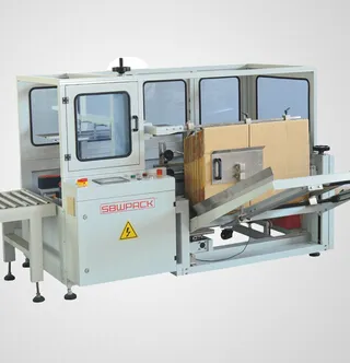 裝箱機(jī)是一種將無(wú)包裝的產(chǎn)品或者小包裝的產(chǎn)品半自動(dòng)或者自動(dòng)裝入運(yùn)輸包裝的一種設(shè)備,其工作原理是將產(chǎn)品按一定排列方式和定量裝入箱中(瓦楞紙箱、塑料箱、托盤),并把箱的開(kāi)口部分閉合或封牢。按照裝箱機(jī)的要求,它應(yīng)具有紙箱成形(或打開(kāi)紙箱)、計(jì)量、裝箱的功能,有些還配有封口或者捆扎功能。