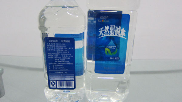 上圖是礦泉水瓶貼標(biāo)機對圓瓶礦泉水瓶進行單側(cè)面貼標(biāo)后的樣品圖片。