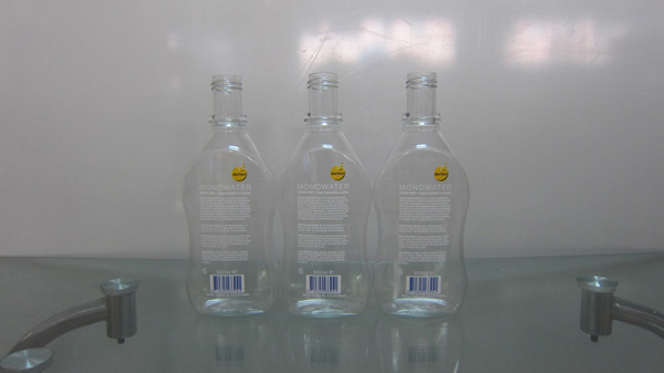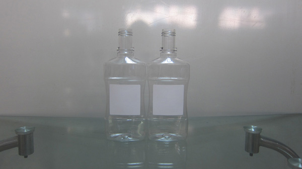 上圖是塑料瓶貼標(biāo)機(jī)對凹面塑料瓶貼標(biāo)后的樣品。